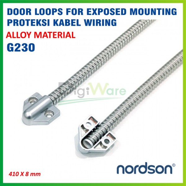 Door Loops for Exposed Mounting Proteksi Kabel Wiring G230 merupakan alat instalasi tertanam buatan Nordson yang dapat dipasang di antara koneksi kusen pintu dan pintu yang bertujuan untuk melindungi kabel dari kerusakan, terjepit, dan putus.