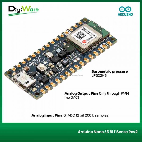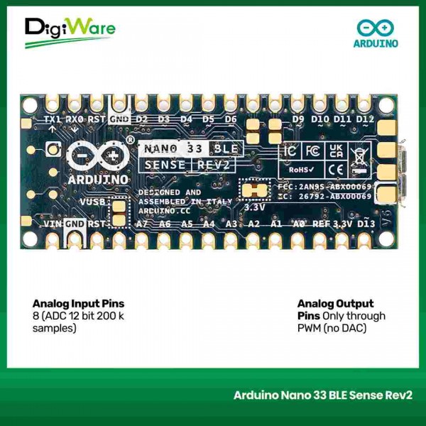 • Analog Input Pins : 8 (ADC 12 bit 200 k samples)