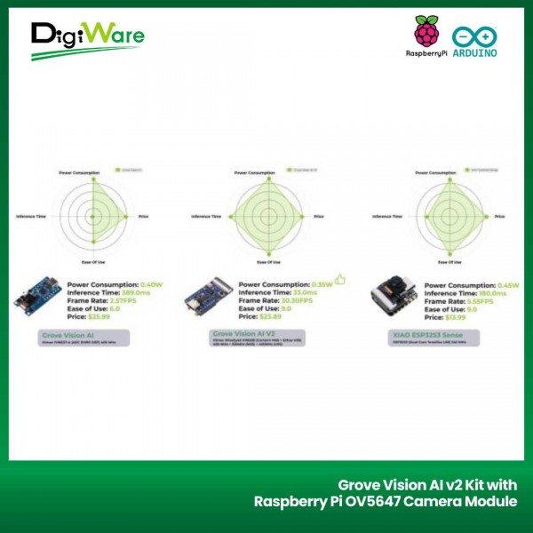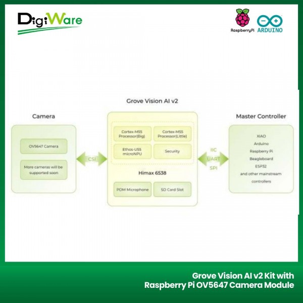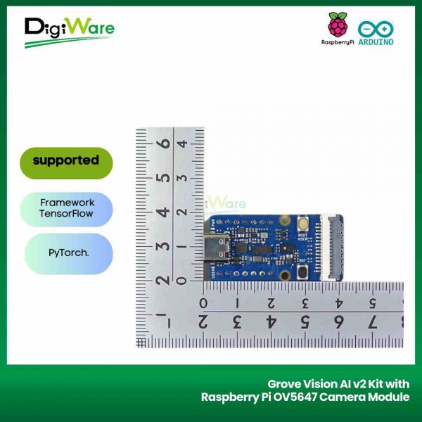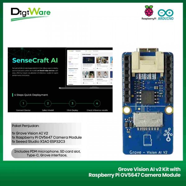 Grove Vision AI v2 Kit merupakan module computer vision berbasis mikrokontroler WE2 HX6538 (based on Arm Cortex-M55 & Ethos-U55) yang dikombinasikan dengan board Seeed Studio XIAO. Dengan modul ini pengguna bisa mencoba pembelajaran machine learning menggunakan mikrokontroler. Modul ini sudah support framework TensorFlow dan PyTorch.