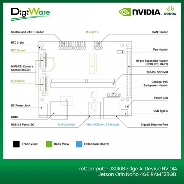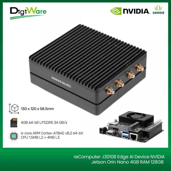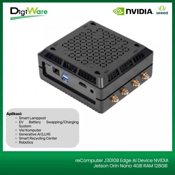 reComputer J3010B merupakan komputer mini berbasis NVIDIA Jetson Orin Nano 4GB yang dirancang untuk pengembangan AI Edge Computing dan aplikasi IoT cerdas dengan harga terjangkau.