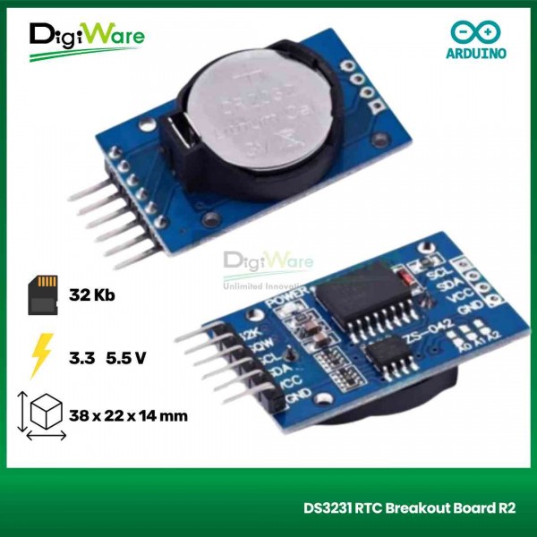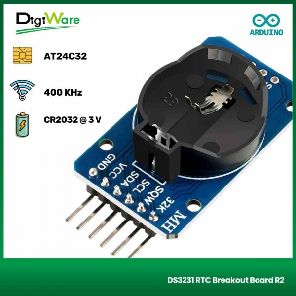 DS3231 RTC Breakout Board R2 merupakan sebuah modul Real Time Clock (RTC) dengan antarmuka I²C yang di dalamnya telah terintegrasi dengan kristal osilator internal (TXCO). Modul ini telah dilengkapi baterai back-up (CR2032) yang akan menjaga kondisi waktu agar tetap sesuai meskipun catu daya utama telah dimatikan.