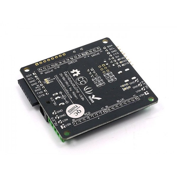 Rainbowduino LED Driver merupakan modul driver LED multiplex berbasis ATMEGA328 yang kompatibel dengan Arduino IDE. Modul ini dapat mengatur matriks LED RGB 8x8 atau kubus LED RGB 4x4x4 dalam mode anoda.