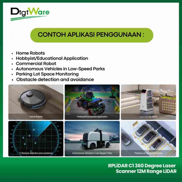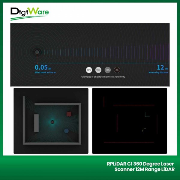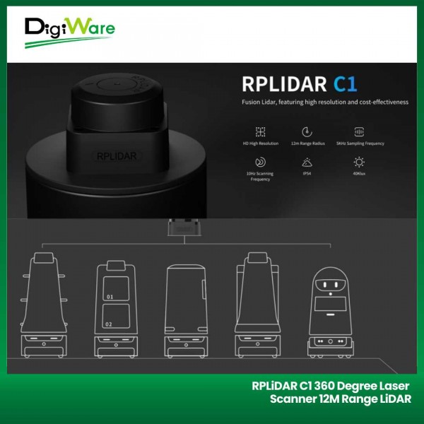 RPLiDAR C1 360 Degree Laser Scanner merupakan sensor LiDAR (Light Detection and Ranging) omnidirectional 360° yang dapat digunakan untuk mengukur jarak sensor dengan obyek. Sensor ini bergerak secara omnidirectional sehingga dapat digunakan untuk pemetaan area. Sensor ini sering digunakan pada aplikasi robotika, pemetaan area, dan lain sebagainya.