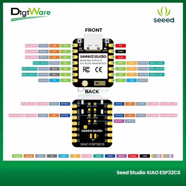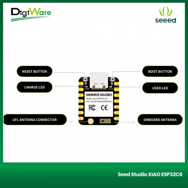 Seeed Studio XIAO ESP32C6 with Dual 32-bit RISC-V Processors Support 2.4GHz WiFi 6, BLE 5.0, Zigbee, and Thread