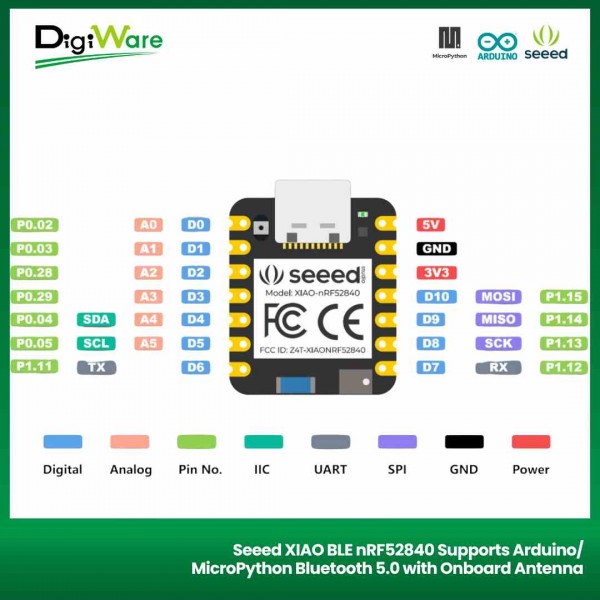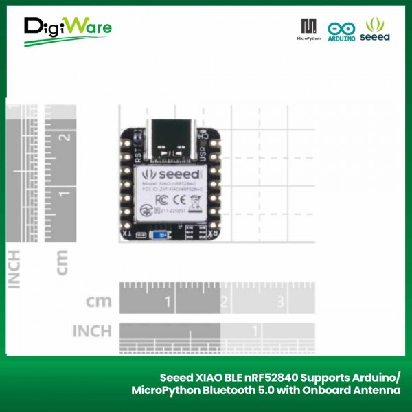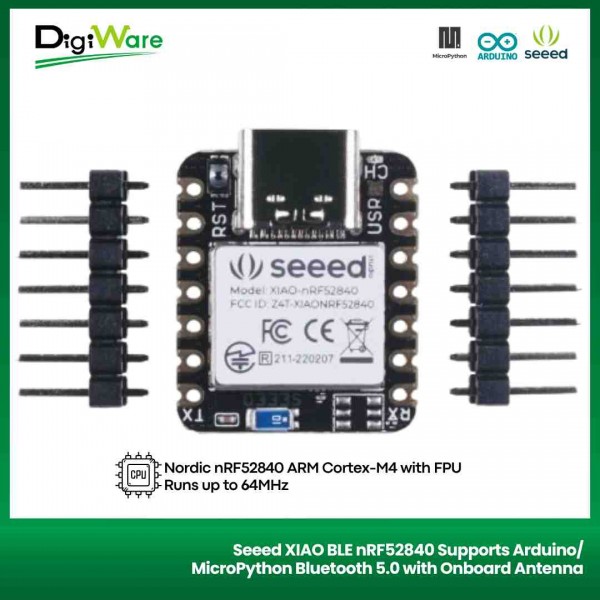 Selain sudah menggunakan CPU nRF52840, dev board ini juga sudah dilengkapi dengan Bluetooth Low Energy (BLE) 5.0 sehingga sangat memungkinkan untuk terhubung dengan perangkat-perangkat luar dengan memanfaatkan konektivitas wireless.