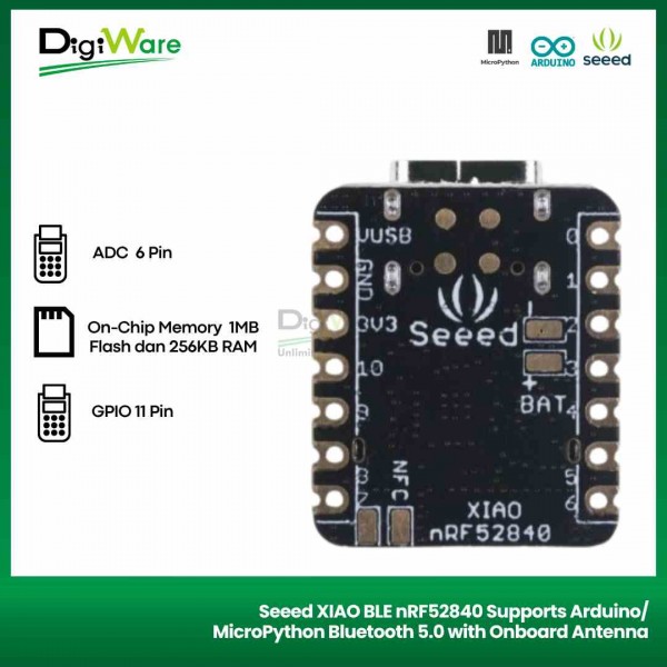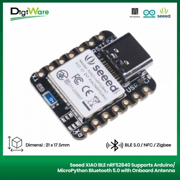 Seeed XIAO BLE nRF52840 merupakan development board dari Seeedstudio yang sudah menggunakan mikrokontroler nRF52840 sebagai otaknya. Dev board ini memiliki spesifikasi hardware yang powerfull sehingga dapat digunakan untuk aplikasi-aplikasi mini AI dengan TinyML.