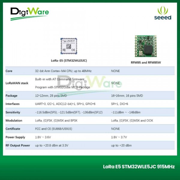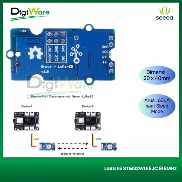 Modul LoRa-E5 LoRaWAN STM32WLE5JC merupakan modul LoRaWAN include LoRa RF dan MCU menjadi satu. Modul ini menggunakan MCU Ultra-low-power dengan arsitektur ARM Cortex M4 dan RF LoRa SX126x.
