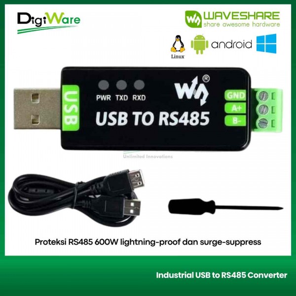 Merupakan konverter USB to RS485 industrial yang didalamnya ditenagai oleh chipset FT232RL. Perangkat ini dilengkapi rangkaian proteksi seperti lightning-proof, resettable fuse, ESD protection, TVS diode, dan sebagainya. Perangkat ini juga sangat mudah digunakan, ia memungkinkan pengguna untuk melakukan tranceiving data secara otomatis. Karena faktor komunikasi yang cepat, stabilitas, realibilitas, dan keamanan yang baik membuat perangkat konverter USB to RS485 ini menjadi solusi ideal untuk mengontrol perangkat industri yang membutuhkan komunikasi data tinggi.
