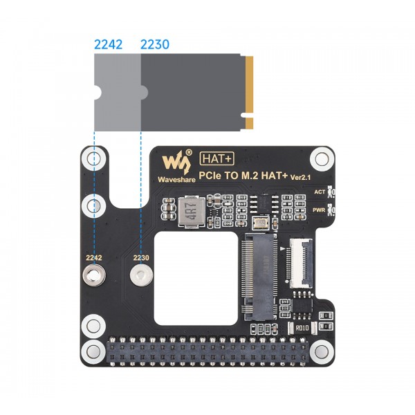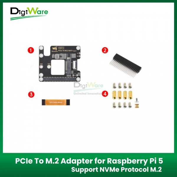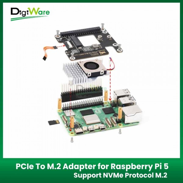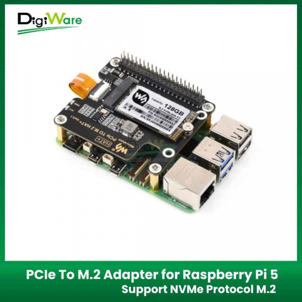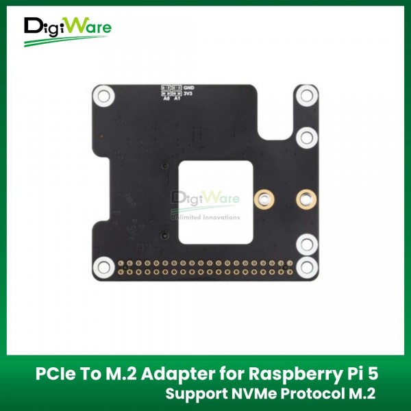 PCIe to M.2 Adapter merupakan HAT PCIe to M.2 adapter yang kompatibel dengan Raspberry Pi 5. HAT ini mendukung dua ukuran NVMe: 2242 dan 2230. Selain itu, juga kompatibel dengan 40 Pin GPIO Raspberry Pi 5, sehingga pengguna masih dapat menggunakan GPIO Raspberry Pi ketika menggunakan HAT ini.