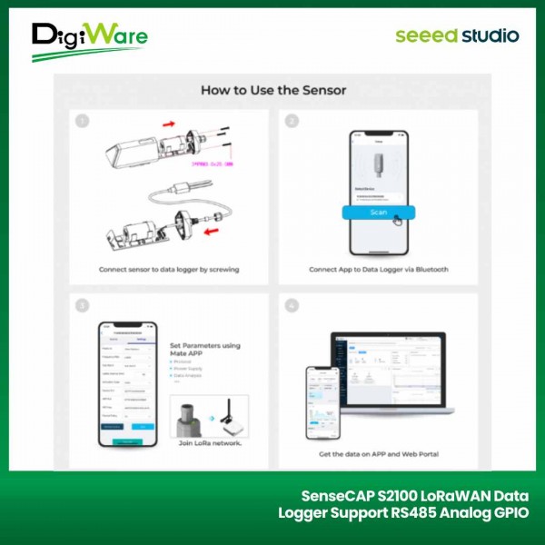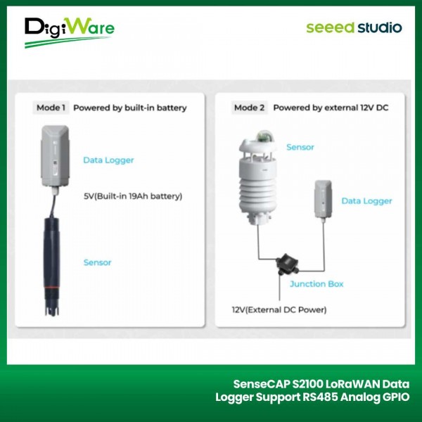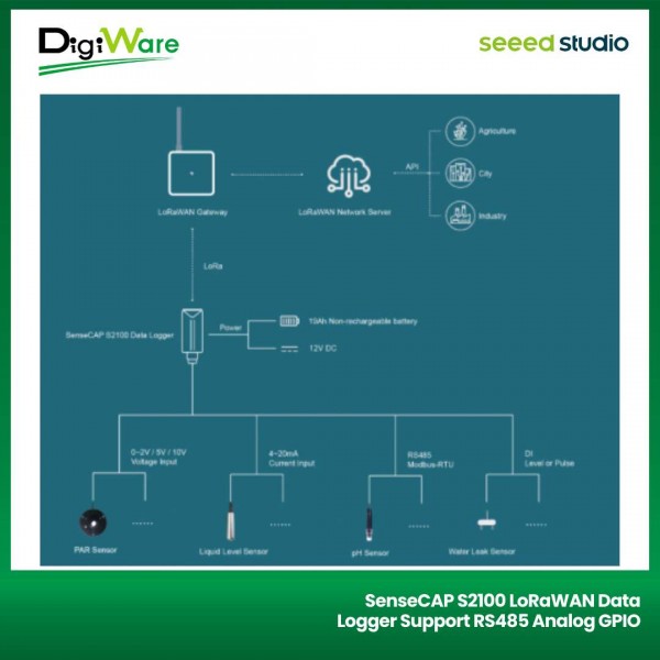SenseCAP S2100 merupakan perangkat data logger yang dapat menampung data yang dihasilkan oleh sensor. Perangkat ini dilengkapi dengan konektivitas LoRa sehingga bisa mengirim data-data dari sensor melalui jaringan LoRaWAN.