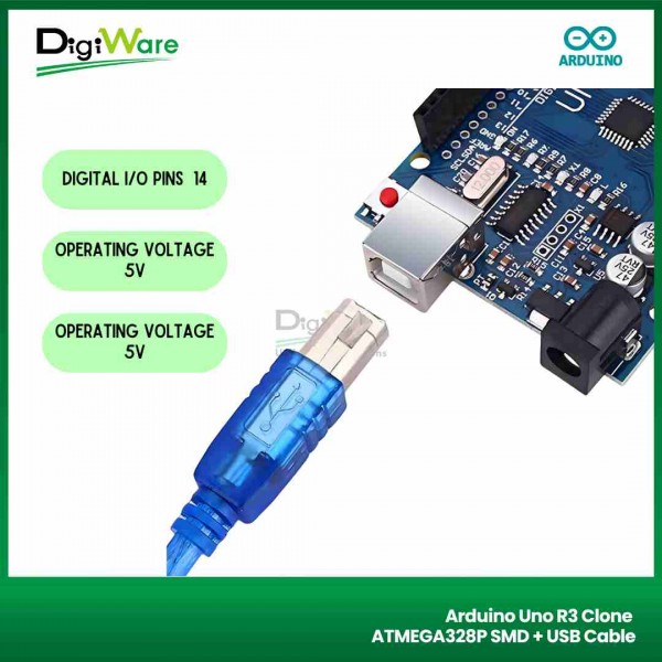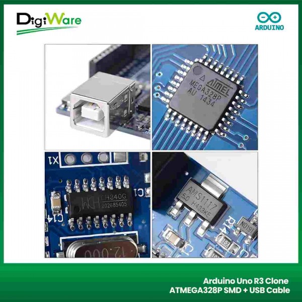 Arduino Uno R3 Clone merupakan board development Arduino yang berbasis mikrokontroler ATmega328. Board ini merupakan versi clone dan kompatibel dengan Arduino Uno.