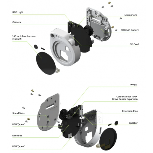 - Built-in AI Processor: Himax HX6538 (Cortex M55 + Ethos-U55)