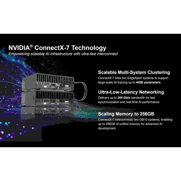 • Menghubungkan dua sistem EdgeXpert untuk bekerja dengan model hingga 405 miliar parameter