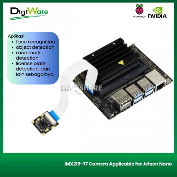IMX219-77 Camera merupakan modul kamera berbasis sensor IMX219 dari SONY yang kompatibel dengan Jetson Nano. Modul kamera ini memiliki resolusi 8 MP (3280 × 2464), viewing angle 79.3 derajat, apperture f2.0, serta dapat dikoneksikan ke NVIDIA Jetson Nano.