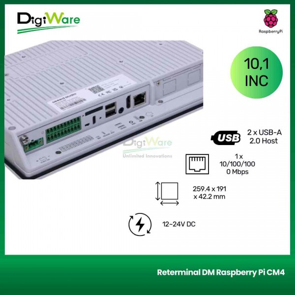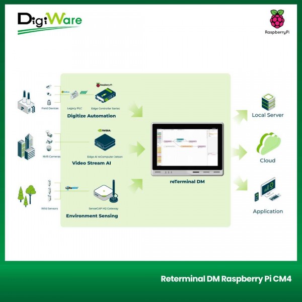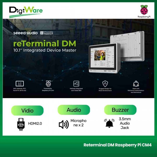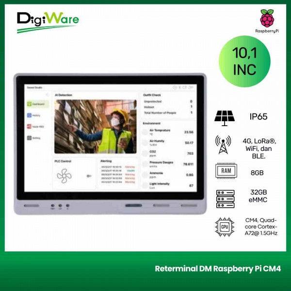 reTerminal DM adalah Panel PC, HMI, PLC, IIoT Gateway all-in-one yang ditenagai oleh Raspberry Pi CM4, dengan panel depan IP65 10.1'' dan antarmuka industri yang kaya, dan terintegrasi secara native dengan Node-RED serta mendukung ekosistem perangkat lunak berbasis Raspberry Pi. reTerminal DM didesain sebagai versi lanjutan dari reTerminal.