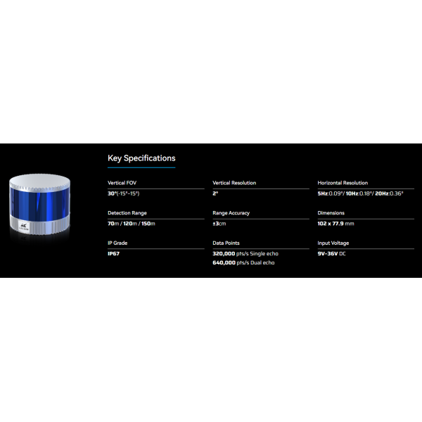 LSLiDAR C16 C16151B merupakan sensor pemindah obyek menggunakan sinar laser 3D (Vertikal dan Horisontal) yang mampu melakukan pemindaian obyek hingga jarak sampai 150 meter. LiDAR C16 sangat cocok sekali digunakan untuk keperluan kendaraan pintar seperti mobil pintarnya TESLA. Selain itu, juga sangat baik sekali digunakan untuk diaplikasikan pada bidang robotika.