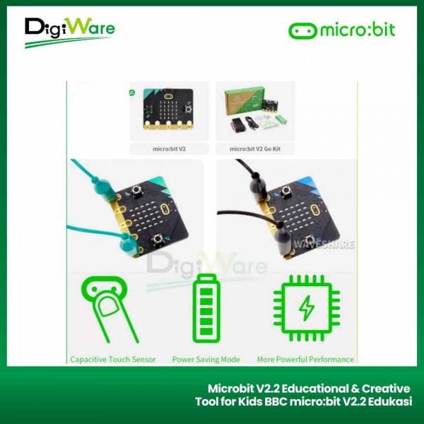 Microbit V2.2 merupakan versi upgrade dari microbit versi lama dimana pada versi 2 ini sudah dilengkapi dengan speaker, microphone, touch sensitive logo serta memiliki prosesor yang lebih cepat.