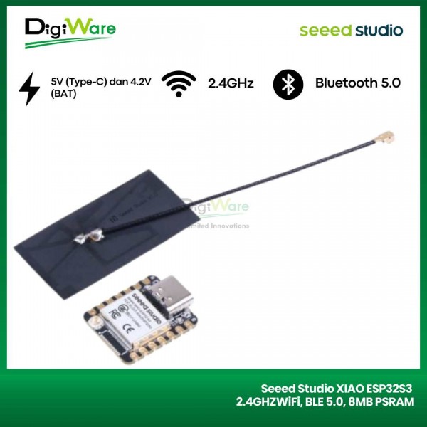 Seeed Studio XIAO ESP32S3 Sense merupakan board mikrokontroler berbasis Xtensa Prosesor ESP32-S3R8 SoC yang dilengkapi dengan antarmuka 2.4GHz WiFi dan Bluetooth BLE 5.0. Board ini juga dilengkapi dengan 8MB PSRAM dan 8MB memori flash yang sangat cukup untuk digunakan task-task yang belum terlalu kompleks.