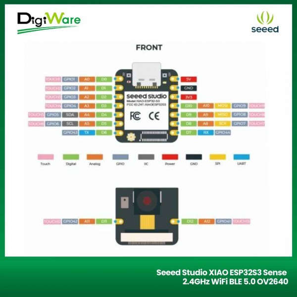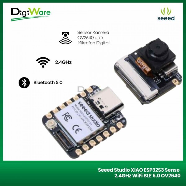 Seeed Studio XIAO ESP32S3 Sense merupakan board mikrokontroler berbasis Xtensa Prosesor ESP32-S3R8 SoC yang dilengkapi dengan antarmuka 2.4GHz WiFi dan Bluetooth BLE 5.0