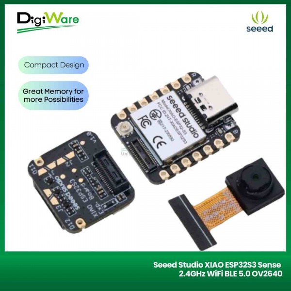 Board ini juga sudah terintegrasi dengan sensor kamera OV3660, mikrofon digital, dan juga antarmuka untuk penyimpanan kartu SD hingga sampai 32GB FAT.