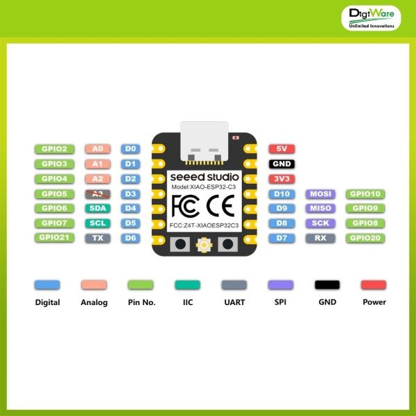 Seeed XIAO ESP32C3 merupakan development board yang terintegrasi dengan chip mikrokontroler ESP32-C3 32-bit RISC-V dengan kecepatan clock sampai 160MHz. Selain itu, board ini juga sudha terintegrasi dengan jaringan wireless 2.4GHz Wi-Fi dan Bluetooth 5.0