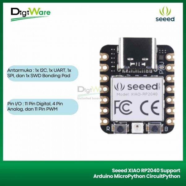 Selain itu, Seeed XIAO RP2040 dapat diprogram menggunakan bahasa pemrograman C (Arduino) maupun Micropython dengan menggunakan Thonny IDE sehingga sangat cocok sekali digunakan untuk pembelajaran bahasa pemrograman python yang saat ini tengah naik daun.