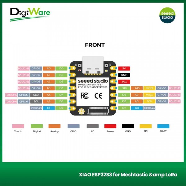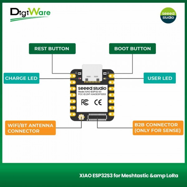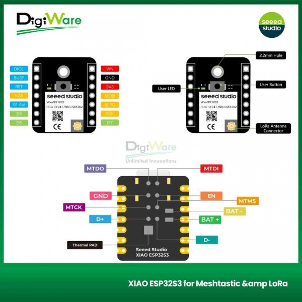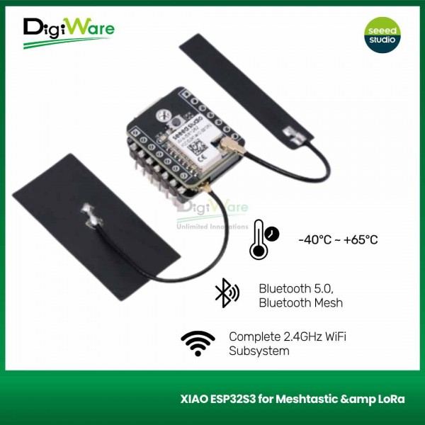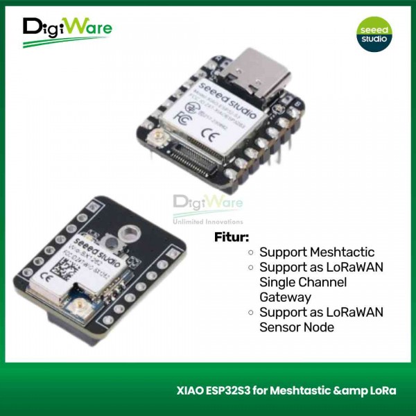 XIAO ESP32S3 for Meshtastic & LoRa merupakan kit development board yang dilengkapi dengan modul XIAO ESP32S3 dan Wio-SX1262 LoRa. Board ini dapat digunakan untuk Meshtastic, LoRa, dan LoRaWAN. Selain itu, juga mendukung konektivitas Bluetooth (BLE) dan WiFi, yang sudah dilengkapi dengan chip manajemen daya sehingga hemat energi.