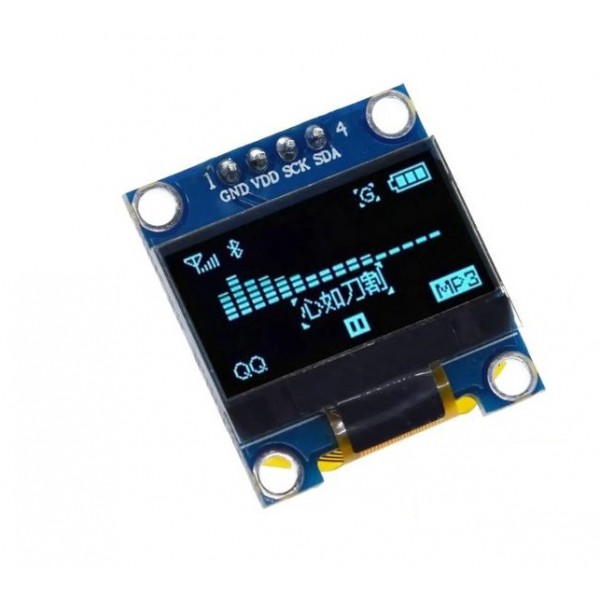 Merupakan panel OLED berukuran 1.3 inch dengan resolusi 128x64 dan warna cahaya biru. Panel ini menggunakan jalur I2C untuk berkomunikasi dengan mikrokontroler, mini PC, ataupun development board lainnya.