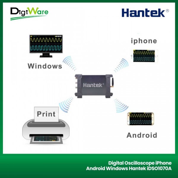 Hantek iDSO1070A merupakan osiloskop portabel dari Hantek yang dibuat khusus untuk menunjang kegiatan yang memiliki mobilitas yang tinggi. Osiloskop ini tidak dilengkapi display, namun sudah dilengkapi antarmuka USB dan WiFi untuk menampilkan data hasil pengukuran dengan menggunakan aplikasi bawaan dari Hantek iDS01070A yang dapat diinstal di komputer maupun perangkat smartphone (Android dan iPhone).