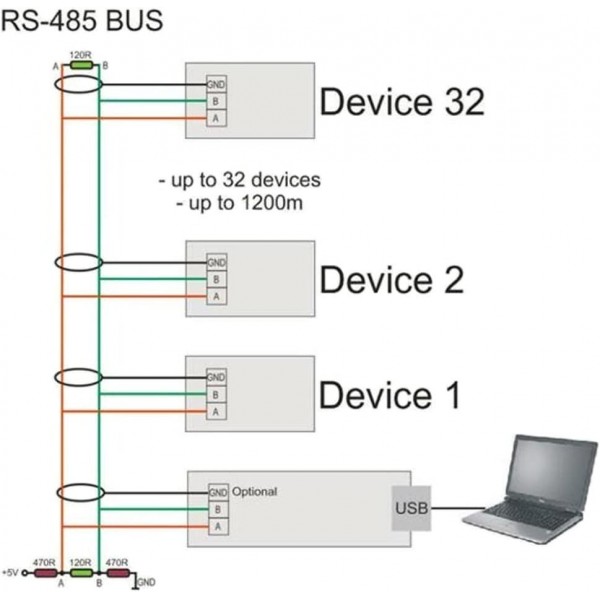 Merupakan modul konverter USB to RS485 half-duplex kelas industri yang tidak terisolasi. Modul ini berbasis FTDI FT232R dan MAX485ESA dapat digunakan hingga 32 perangkat RS485.