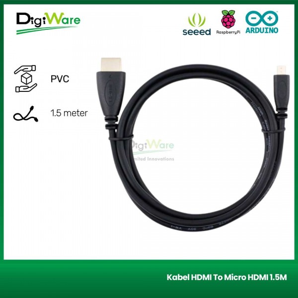 Kabel konverter HDMI to Micro HDMI dengan panjang 1.5 meter. Cocok digunakan pada Raspberry Pi 4 maupun device lain.