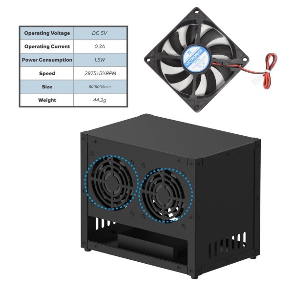 Enclosure for Raspberry Pi Cluster, Compatible with Raspberry Pi 5, 4B, 3B+/3B, and Other B Models, House Up to 4×2.5 inch SSD, Support PoE+ HAT and Switch, 2 Cooling Fans.