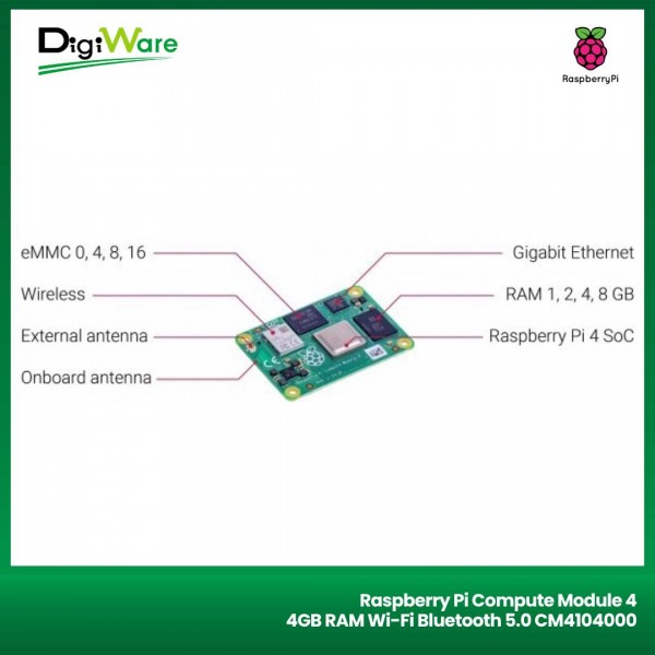 Raspberry Pi Compute Module 4 (CM4) merupakan versi Raspberry Pi yang memiliki bentuk lebih kecil dan lebih ringkas. CM4 ini mengusung prosesor quad-core 64-bit Cortex A72 dengan performa tinggi, RAM LPDDR4 4GB, dukungan layar ganda pada resolusi hingga 4K, dukungan multimedia yang lebih baik hingga 4Kp60, Gigabit Ethernet support IEEE1588, USB 2.0, antarmuka kamera ganda, antarmuka PCIe Gen 2 x1, dan WiFi dual-band 2.4/5.0GHz with On-board PCB dan eksternal antenna serta Bluetooth 5.0.