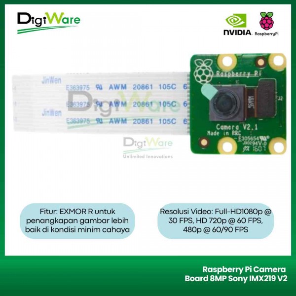 RPI Camera V2 adalah modul kamera berkualitas tinggi dengan sensor IMX219 dari Sony yang mendukung teknologi EXMOR R yang berguna untuk menangkap gambar pada kondisi yang minim cahaya.