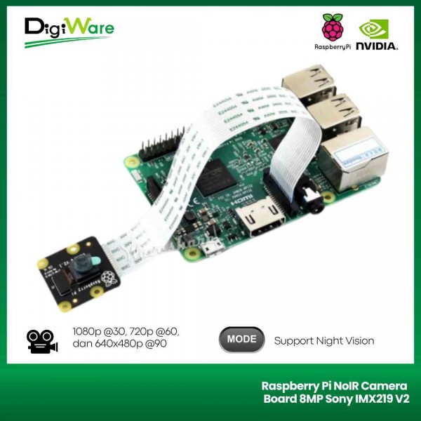 Raspberry Pi NoIR Camera Board 8MP Sony IMX219 V2 Night Vision merupakan modul kamera yang menggunakan sensor kamera dari Sony. Modul kamera ini memiliki hasil tangkapan gambar yang bagus sehingga sangat cocok untuk digunakan keperluan pengolahan citra gambar untuk machine learning.