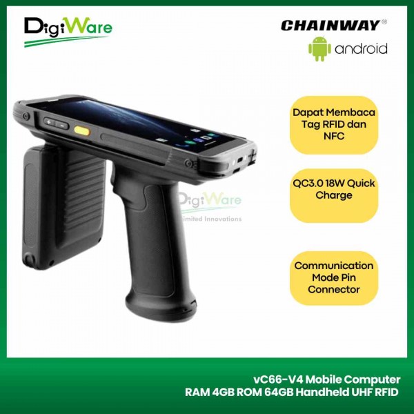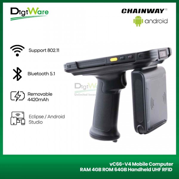 C66-V4 dapat digunakan untuk membaca tag RFID UHF maupun NFC dengan memori penyimpanan 64GB yang dapat ditambah dengan memori eksternal sampai 128GB (microSD). Reader ini juga menggunakan memori RAM sebesar 4GB.