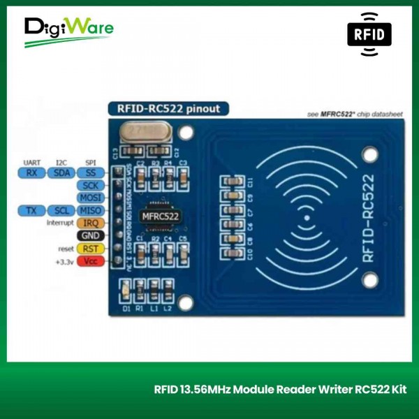 Chip MFRC522 ini mendukung semua varian dari Mifare Mini, Mifare 1K, Mifare 4K, Mifare Ultralight, Mifare DesFire EV1 dan Mifare Plus RF protokol identifikasi.