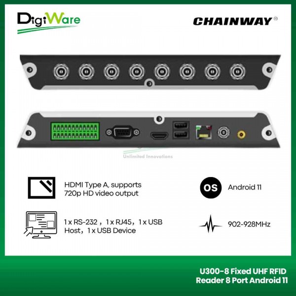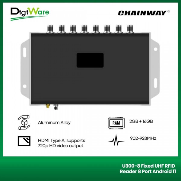 U300 adalah fixed RFID reader yang telah dibekali dengan sistem operasi Android 11, CPU quad-core 2.0GHz serta RAM 2GB dan memory internal 16GB. U300 berbasis chip Impinj E710 sehingga memiliki kemampuan pemrosesan data yang sangat powerfull. U300 juga mengintegrasikan RS232, RJ45, HDMI dan antarmuka lainnya, serta mendukung catu daya DC, POE maupun POE +. U300 dapat memenuhi kebutuhan aplikasi di lingkungan yang kompleks seperti pergudangan, manajemen file, manajemen perpustakaan, manajemen lini produksi, kabinet perangkat medis, toko tak berawak, dll.