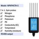 Merupakan sensor yang memiliki 7 fungsi pengukuran kadar konsentrasi dalam tanah seperti Nitrogen, Phosphorus (Fosfor), Potassium (Kalium), pH, Conductivity (EC), Temperature, Humidity (Moisture). Sensor ini memiliki output data RS485 yang dapat mengirimkan data dengan jarak sampai 800m sehingga sangat cocok digunakan pada lahan pertanian yang jauh dari data center/pusat kontrol. Dengan kalibrasi yang aktual, sensor ini menawarkan presisi tinggi, respons cepat, dan output yang stabil. Cocok untuk berbagai jenis tanah dan tahan terhadap korosi serta elektrolisis jangka panjang. Dengan pemantauan yang akurat terhadap berbagai parameter tanah, petani dapat membuat keputusan yang lebih baik untuk meningkatkan produktivitas dan keberlanjutan pertanian.