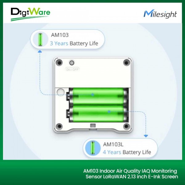 Kelebihan lain AM103 ini selain data ditampilkan pada layar, data sensor juga dapat dikirimkan melalui teknologi LoRaWAN. Dengan teknologi rendah daya ini, AM103 dapat beroperasi lebih dari 3 tahun hanya dengan dua baterai yang dapat diganti. Dengan integrasi bersama Milesight LoRaWAN gateway dan solusi Milesight IoT Cloud, pengguna dapat dengan mudah mengelola semua data sensor.