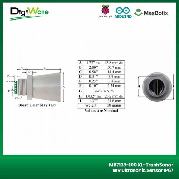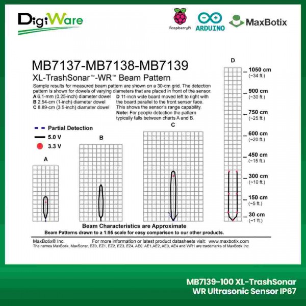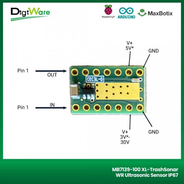 MB7139-100 XL merupakan sensor ultrasonik dengan tingkat akurasi yang tinggi dari Maxbotix. Sensor ini memiliki resolusi pengukuran sebesar 1 cm dengan range jarak pengukuran sejauh 20 - 350cm.