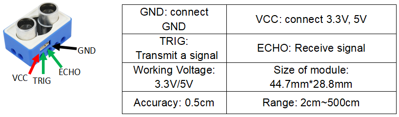 Sensor ultrasonik dirancang untuk memanfaatkan karakteristik gelombang ultrasonik. Saat beroperasi normal, pin TRIG mengirimkan sinyal ultrasonik. Saat menemui hambatan, sinyal ultrasonik akan dipantulkan kembali. Setelah pin ECHO menerima sinyal ultrasonik yang dipantulkan, sinyal tersebut akan diteruskan ke MCU. MCU dapat menghitung waktu yang dibutuhkan ECHO untuk menerima sinyal guna menentukan jarak saat ini. Frekuensi gelombang suara yang dapat didengar oleh telinga manusia adalah 20Hz hingga 20KHz, sedangkan frekuensi suara yang dihasilkan oleh modul ultrasonik lebih besar dari 20KHz, sehingga suara dari modul ultrasonik tidak dapat didengar oleh telinga manusia.