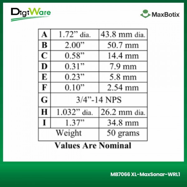 Modul sensor ultrasonic yang dikemas agar tahan terhadap air (water resistant) serta memiliki kemampuan untuk mengeliminasi noise dari lingkungan sekitar. Ketahanan terhadap air sesuai dengan standar IP67 ( tes ketahanan di dalam air dalam jangka waktu 30 menit pada kedalaman 1 m). Kalibrasi secara otomatis dan real-time ketika terkena noise. Free run (dapat melakukan pengukuran terus menerus). Update hasil pembacaan jarak : 100ms (10 Hz)